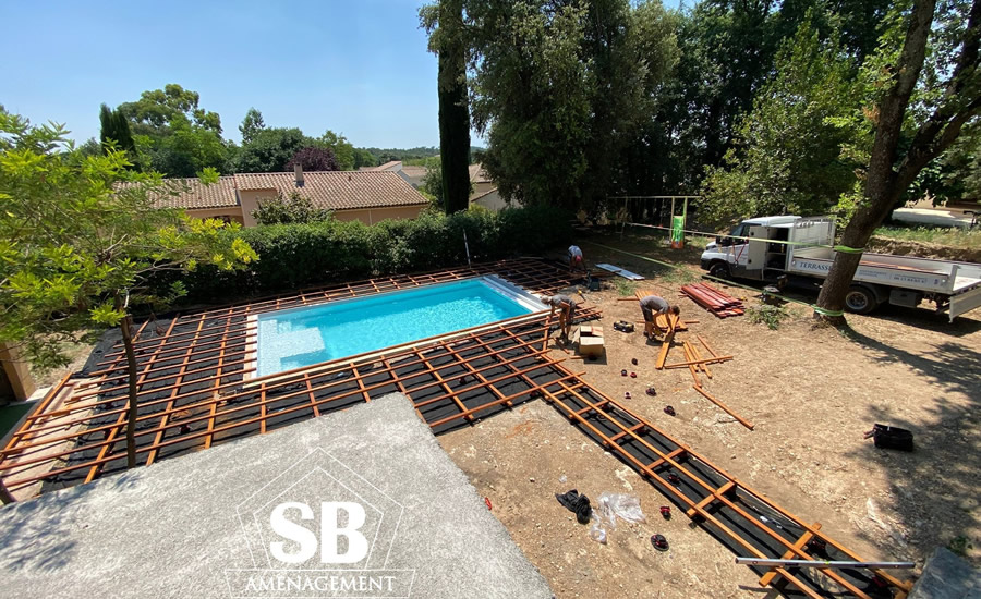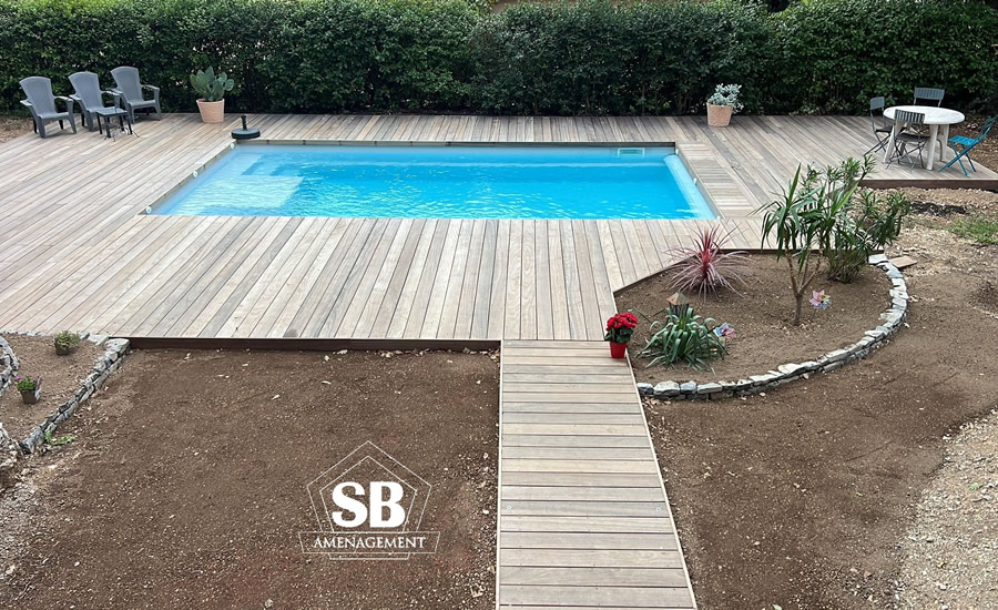 Partenariat avec Hyméo pour l’installation du bassin + volet roulant immergé avec un habillage SB.